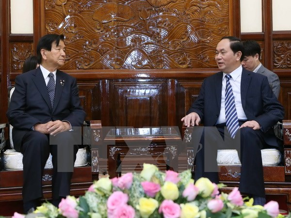 Chủ tịch nước Trần Đại Quang tiếp Ngài Hitoshi Kato, Chủ tịch Hội Hữu nghị Nhật-Việt thành phố Sakai. (Ảnh: Nhan Sáng/TTXVN)
