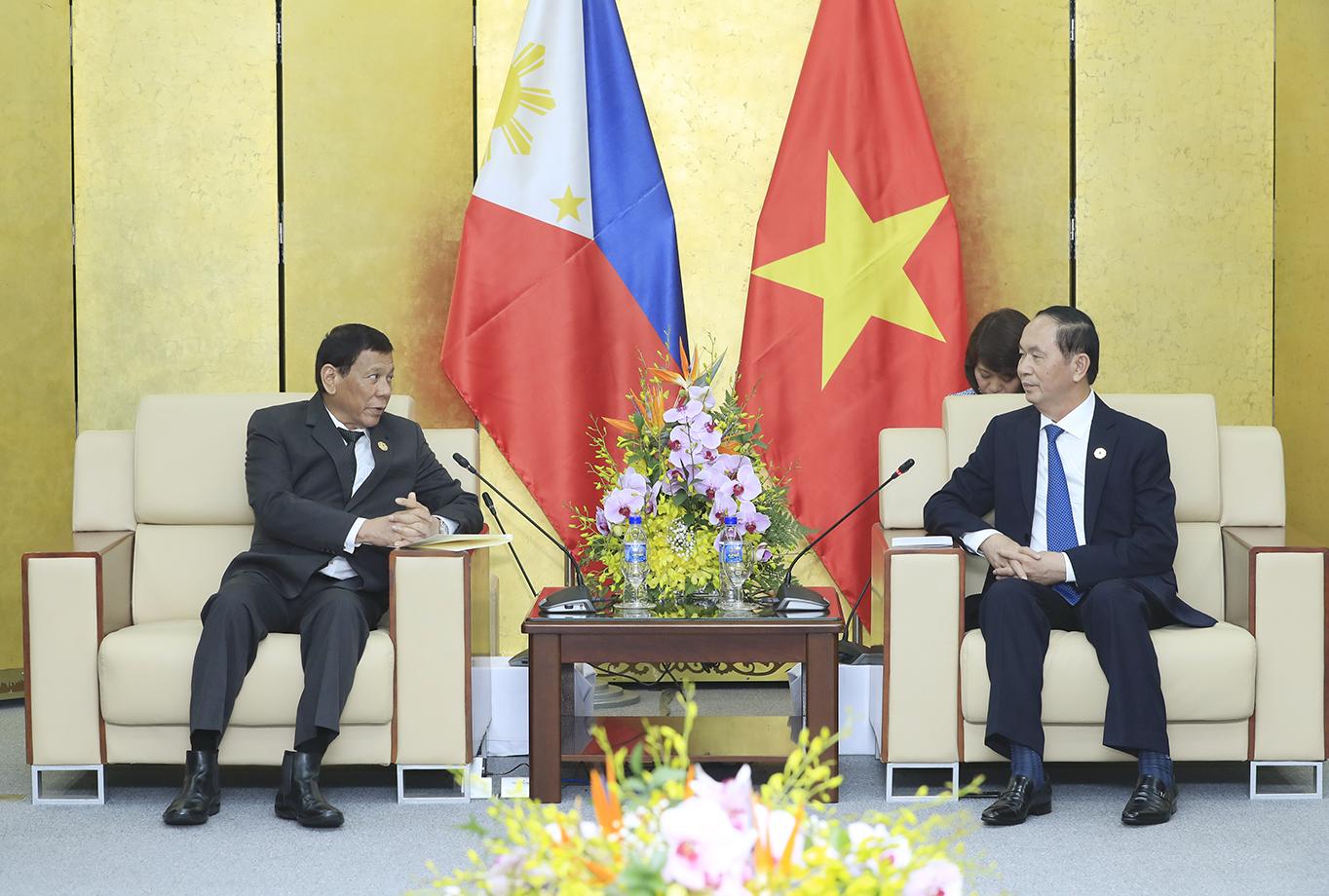 Ngày 9/11, tại Đà Nẵng, nhân dịp Tuần lễ Cấp cao APEC 2017, Chủ tịch nước Trần Đại Quang đã có cuộc gặp song phương Tổng thống Philippines Rodrigo Roa Duterte.