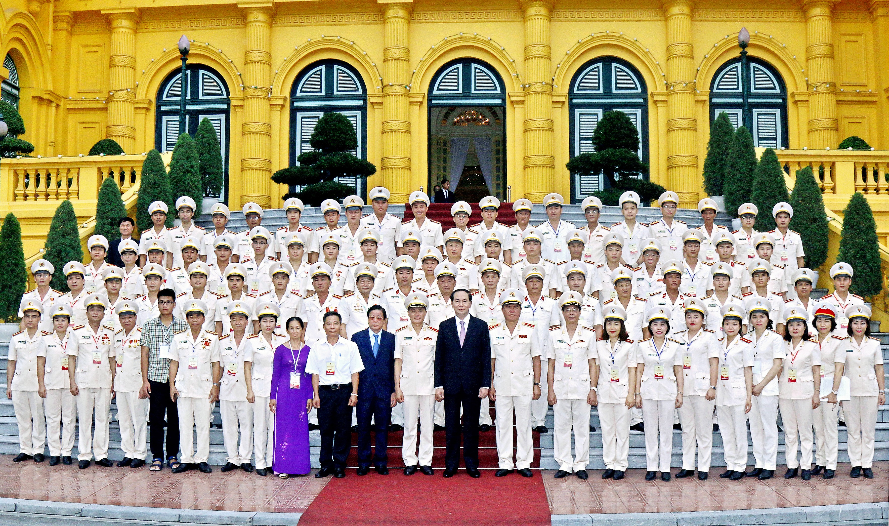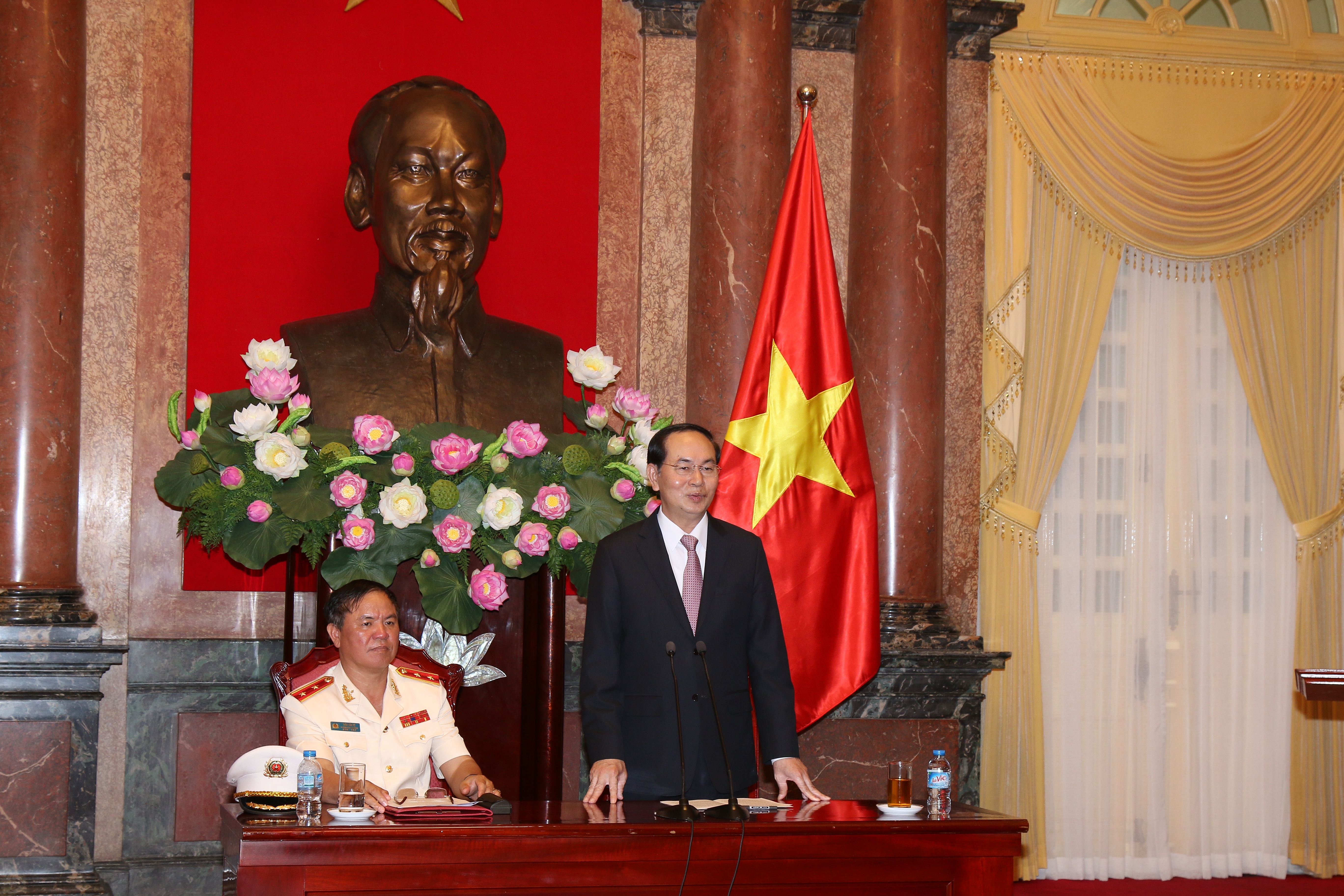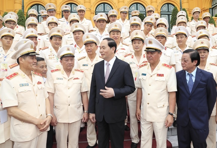 Tại buổi gặp mặt, thay mặt lãnh đạo Ðảng, Nhà nước, Chủ tịch nước Trần Đại Quang biểu dương, khen ngợi sự nỗ lực phấn đấu, những chiến công, thành tích đặc biệt xuất sắc mà lực lượng Cảnh sát nhân dân đã đạt được trong suốt chặng đường vẻ vang 55 năm qua.