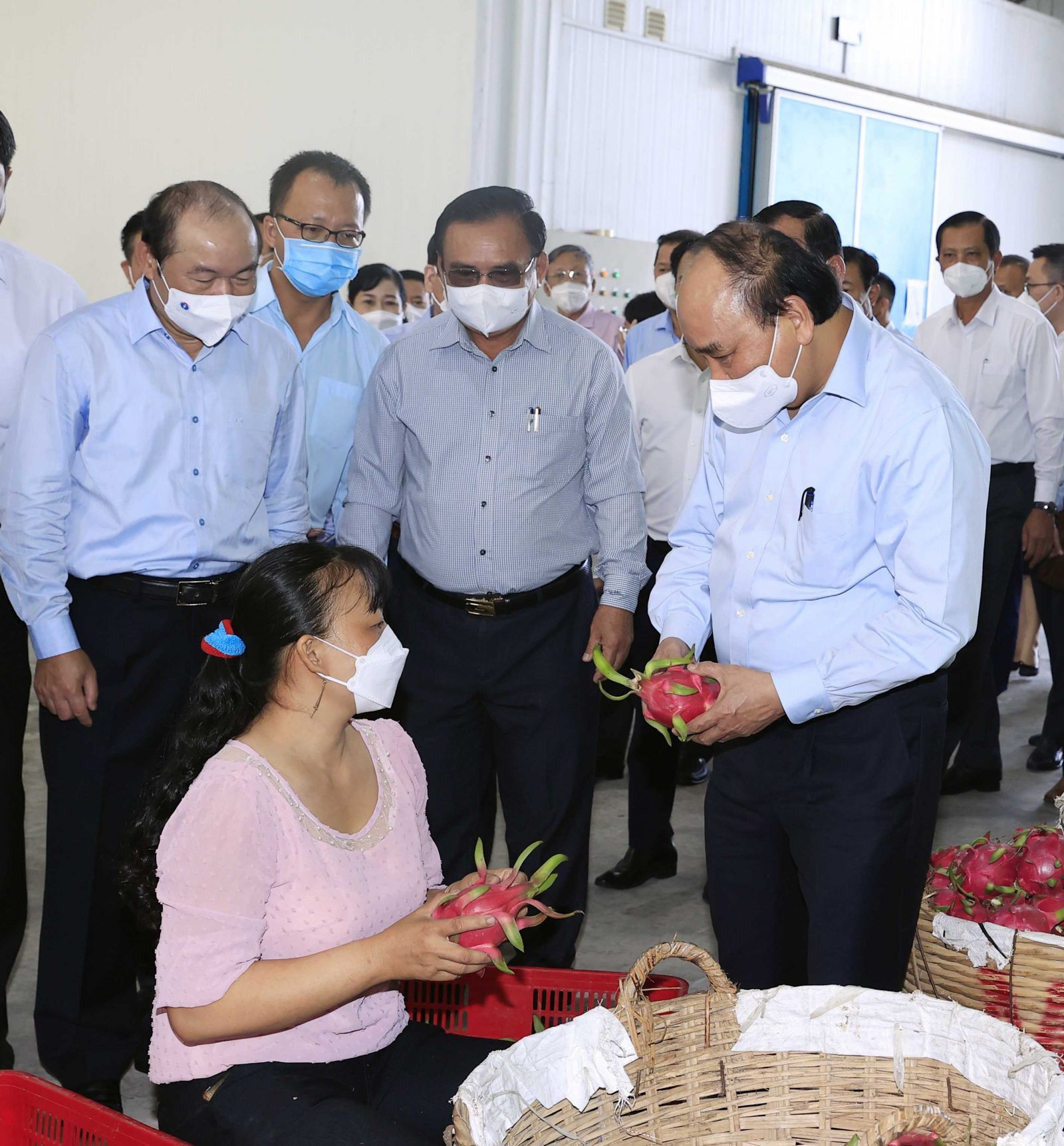 Chủ tịch nước thăm HTX tiêu biểu Mỹ Tịnh An, tỉnh Tiền Giang. Ảnh: VPCTN