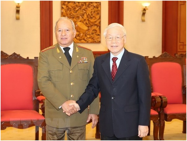 Chiều 26/11, tại Trụ sở Trung ương Đảng, Tổng Bí thư, Chủ tịch nước Nguyễn Phú Trọng đã thân mật tiếp Đoàn đại biểu cấp cao Bộ các Lực lượng vũ trang cách mạng (FAR) Cộng hòa Cuba do Thượng tướng Leopoldo Cintra Frías, Ủy viên Bộ Chính trị Đảng Cộng sản Cuba, Bộ trưởng Bộ các Lực lượng vũ trang Cách mạng Cuba (FAR) dẫn đầu đang có chuyến thăm và làm việc tại Việt Nam.