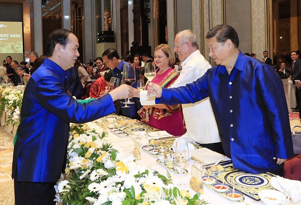 Tối 10/11, tại Khách sạn Sheraton - Đà Nẵng, Chủ tịch nước Trần Đại Quang, Chủ tịch Hội nghị Cấp cao APEC lần thứ 25 đã chủ trì Tiệc chiêu đãi trọng thể và chương trình biểu diễn nghệ thuật đặc sắc (Gala Dinner) chào mừng các nhà Lãnh đạo kinh tế APEC và các phu nhân, phu quân nhân dịp tham dự Hội nghị Cấp cao APEC 2017.