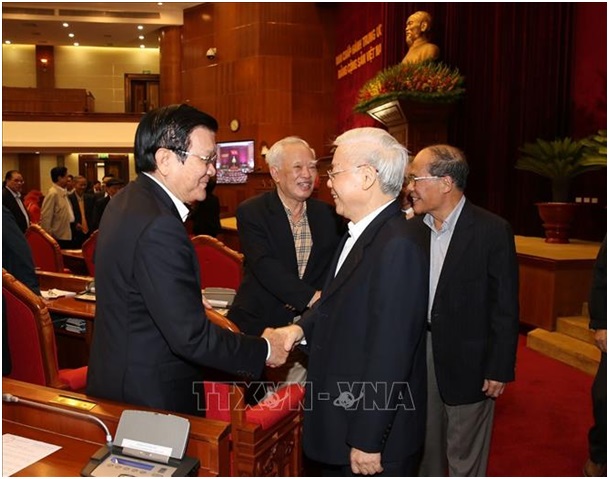 Trân trọng lắng nghe, tiếp thu ý kiến, đóng góp tâm huyết, chân thành của các cán bộ nguyên là lãnh đạo cấp cao của Đảng, Nhà nước đã nêu tại Hội nghị, Tổng Bí thư, Chủ tịch nước Nguyễn Phú Trọng nêu rõ: Tình hình luôn luôn đổi mới, đòi hỏi phải tiếp tục đổi mới cả lý luận và thực tiễn; mong muốn các đồng chí nguyên cán bộ lãnh đạo cấp cao tiếp tục đóng góp kinh nghiệm, trí tuệ, cùng Đảng, Nhà nước lãnh đạo, chỉ đạo phát triển kinh tế - xã hội đất nước, xây dựng Đảng vững mạnh.