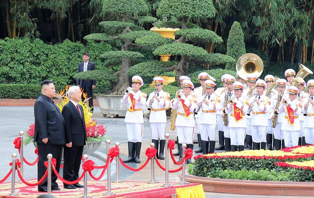 Chiều 1-3, Lễ đón chính thức đồng chí Chủ tịch Kim Jong-un đã được tổ chức trọng thể tại Phủ Chủ tịch theo nghi thức đón nguyên thủ quốc gia. Tổng Bí thư, Chủ tịch nước Nguyễn Phú Trọng chủ trì Lễ đón.