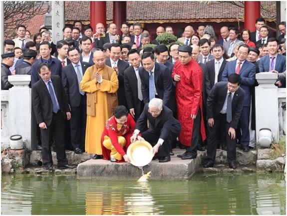 Chiều 26/1, Tổng Bí thư, Chủ tịch nước Nguyễn Phú Trọng và Phu nhân cùng đông đảo kiều bào về dự chương trình Xuân quê hương 2019, đã thực hiện nghi thức thả cá chép tại Hồ Gươm, theo truyền thống của dân tộc Việt Nam, nhân dịp Tết ông Công ông Táo (23 tháng Chạp hàng năm), cầu cho quốc thái dân an, đất nước thái bình, thịnh vượng, nhân dân ấm no, hạnh phúc.