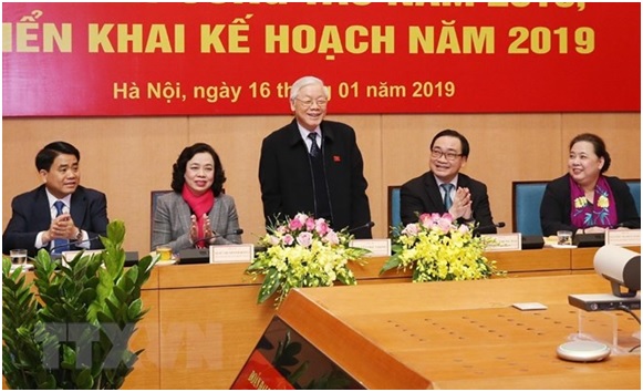 Chiều 16/1, Đoàn đại biểu Quốc hội thành phố Hà Nội tổ chức Hội nghị tổng kết công tác năm 2018 và triển khai kế hoạch năm 2019. Tổng Bí thư, Chủ tịch nước Nguyễn Phú Trọng đến dự. Ủy viên Bộ Chính trị, Bí thư Thành ủy, Trưởng đoàn đại biểu Quốc hội thành phố Hà Nội Hoàng Trung Hải chủ trì Hội nghị.