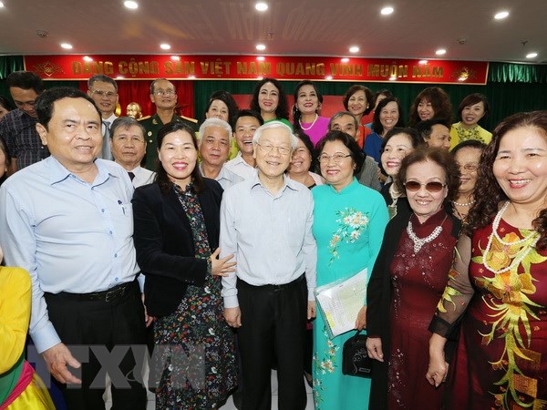 Nhân kỷ niệm 88 năm Ngày truyền thống Mặt trận Tổ quốc Việt Nam (18/11/1930-18/11/2018), tối 14/11, Tổng Bí thư, Chủ tịch nước Nguyễn Phú Trọng đã tham dự Ngày hội Đại đoàn kết toàn dân tộc tại nơi cư trú - địa bàn dân cư số 6, phường Nguyễn Du, quận Hai Bà Trưng, thành phố Hà Nội.