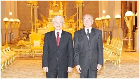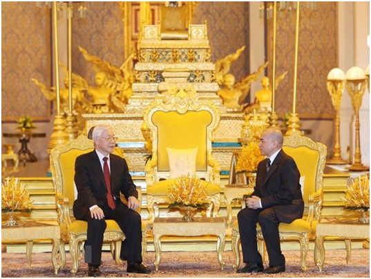 Quốc vương Norodom Sihamoni nhiệt liệt chào mừng Tổng Bí thư, Chủ tịch nước Nguyễn Phú Trọng sang thăm cấp Nhà nước Campuchia, khẳng định chuyến thăm là sự kiện trọng đại có ý nghĩa lịch sử, đúng vào dịp hai nước vừa tổ chức trọng thể các hoạt động kỷ niệm 40 năm Ngày chiến thắng chế độ diệt chủng Pol Pot Ieng Sary và cũng là chuyến thăm nước ngoài đầu tiên của Tổng Bí thư, Chủ tịch nước trên cả hai cương vị Tổng Bí thư và Chủ tịch nước, thể hiện sinh động tình cảm, tình đoàn kết đặc biệt giữa hai nước Việt Nam-Campuchia.