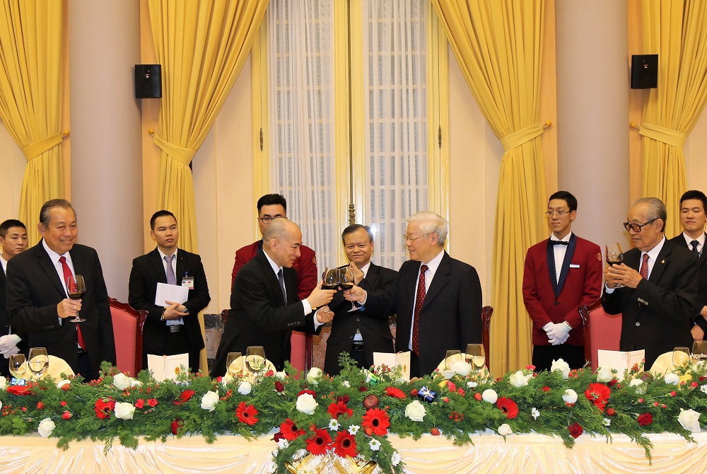 Nhận lời mời của Tổng Bí thư, Chủ tịch nước Nguyễn Phú Trọng, chiều 19/12/2018, Quốc vương Campuchia Preah Bat Samdech Preah Boromneath Norodom Sihamoni bắt đầu chuyến thăm, nghỉ dưỡng tại Việt Nam (19-21/12/2018). Trong buổi chiều, Tổng Bí thư, Chủ tịch nước Nguyễn Phú Trọng đã có cuộc hội kiến thân mật với Quốc vương Norodom Sihamoni tại Phủ Chủ tịch.