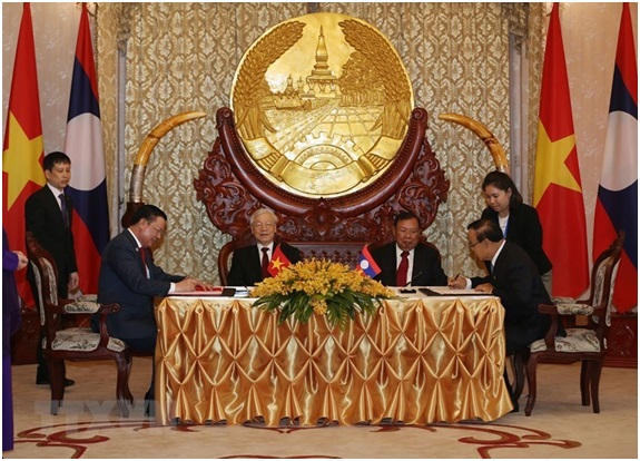 10. Tổng Bí thư, Chủ tịch nước Nguyễn Phú Trọng và Tổng Bí thư, Chủ tịch nước Bounnhang Vorachith đã chứng kiến Lễ ký kết 9 văn kiện hợp tác giữa hai nước, trong đó có Hiệp định về Hợp tác phát triển các công trình năng lượng điện và mỏ; Thỏa thuận Hợp tác giữa hai Bộ Tài chính giai đoạn 2019-2020; Thỏa thuận về xây dựng và khai thác tuyến đường sắt Vũng Áng-Vientiane và một số Thỏa thuận và Biên bản hợp tác giữa các bộ, ngành của hai nước.