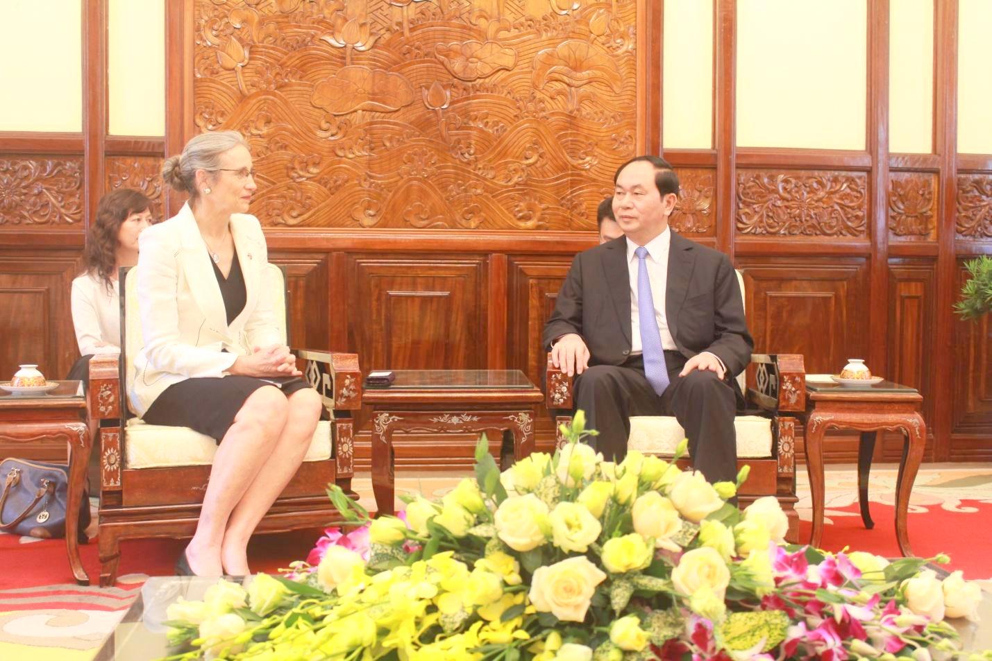 Chiều 21/9, tại Phủ Chủ tịch, Chủ tịch nước Trần Đại Quang đã tiếp thân mật Đại sứ Hà Lan tại Việt Nam Nienke Trooster đến chào xã giao.