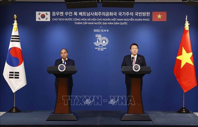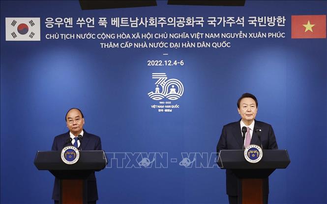 Phát biểu tại họp báo, Tổng thống Hàn Quốc Yoon Suk Yeol nêu rõ: “Chuyến thăm Hàn Quốc lần này của Chủ tịch nước Nguyễn Xuân Phúc có ý nghĩa to lớn, là quan khách đầu tiên của tôi”. Tổng thống Hàn Quốc cho rằng trong 30 năm vừa qua, hai nước đã xây dựng quan hệ hợp tác trên nhiều lĩnh vực đạt kết quả tích cực. Hợp tác về thương mại và đầu tư đã phát triển vượt bậc và người dân hai nước đã có mối quan hệ thân thiết.