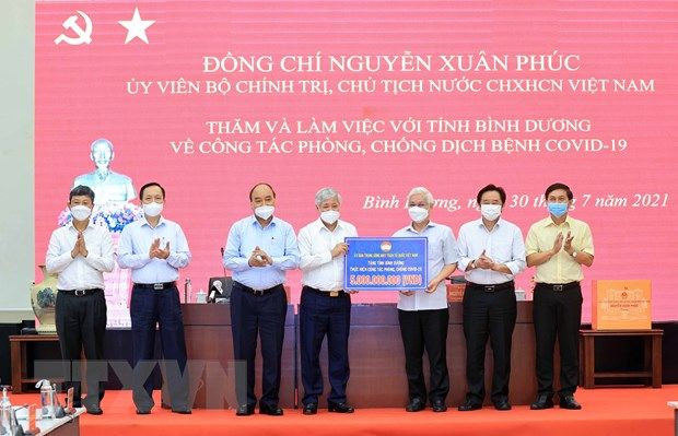 Trước đó, trong sáng 30/7, Chủ tịch nước Nguyễn Xuân Phúc đã thăm làm việc tại thành phố Thuận An (tỉnh Bình Dương), động viên Đảng bộ, chính quyền và nhân dân thành phố phòng, chống dịch, đồng thời tặng 3 tỷ đồng và một số vật tư y tế huy động từ các nhà hảo tâm.