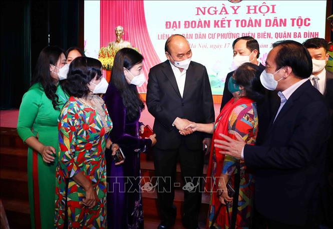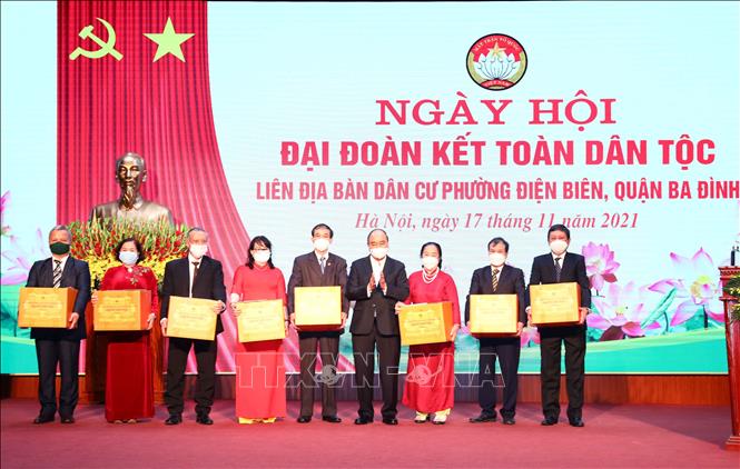 Đã thành nền nếp, vào dịp kỷ niệm thành lập Mặt trận Dân tộc Thống nhất Việt Nam ngày 18/11 hằng năm, Chủ tịch nước Nguyễn Xuân Phúc thường dành thời gian cùng chung vui với nhân dân phường Điện Biên. Nhắc đến lời dạy của Bác Hồ kính yêu: "Chính sách Mặt trận là chính sách rất quan trọng. Công tác Mặt trận là công tác rất quan trọng trong toàn bộ công tác cách mạng", Chủ tịch nước nêu rõ, Ngày hội Đại đoàn kết toàn dân tộc là dịp để cán bộ lắng nghe ý kiến của nhân dân qua hệ thống chính trị cơ sở, tạo sự đồng thuận xã hội, củng cố khối đại đoàn kết toàn dân, từ đó xây dựng niềm tin của quần chúng nhân dân đối với chính quyền các cấp. Chủ tịch nước mong muốn cán bộ, chính quyền và người dân trên địa bàn cùng gìn giữ truyền thống quý báu đoàn kết, thống nhất, nhất là trong bối cảnh quốc tế, khu vực hiện nay.