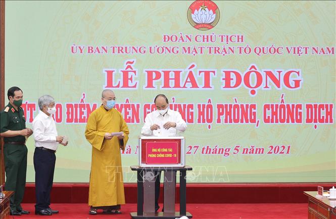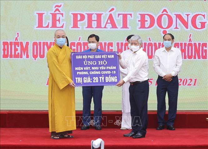 Tại buổi lễ, Chủ tịch nước Nguyễn Xuân Phúc, lãnh đạo các ban, bộ, ngành, các tổ chức chính trị xã hội, các chức sắc tôn giáo đã quyên góp ủng hộ phòng, chống dịch COVID-19.