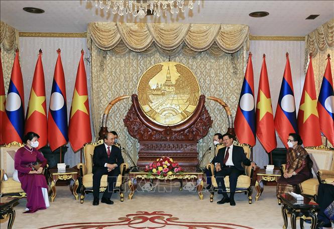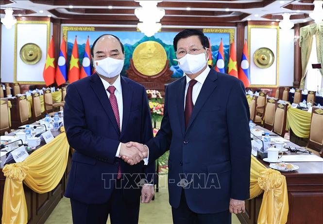 Chủ tịch nước Nguyễn Xuân Phúc bày tỏ vui mừng trở lại thăm đất nước Lào tươi đẹp trên cương vị mới; chân thành cảm ơn Tổng Bí thư, Chủ tịch nước Thongloun Sisoulith, các đồng chí lãnh đạo Đảng, Nhà nước và nhân dân Lào đã dành cho Đoàn sự đón tiếp trọng thị, chu đáo, ấm áp và thắm tình hữu nghị; chúc mừng những thành tựu to lớn, toàn diện và có ý nghĩa quan trọng mà Đảng, Nhà nước và nhân dân Lào đã đạt được trong những năm qua. Chia sẻ những khó khăn của Lào trong bối cảnh dịch bệnh COVID-19 hiện nay, Chủ tịch nước Nguyễn Xuân Phúc tin tưởng dưới sự lãnh đạo của Đảng Nhân dân Cách mạng Lào do Tổng Bí thư Thongloun Sisoulith đứng đầu, nhân dân Lào anh em sẽ vượt qua mọi khó khăn, thực hiện thắng lợi Nghị quyết Đại hội Đảng lần thứ XI và Kế hoạch phát triển kinh tế - xã hội Quốc gia 5 năm lần thứ IX giai đoạn 2021-2025, không ngừng nâng cao vị thế và vai trò trên trường quốc tế.
