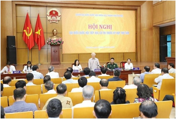 Ngày 15/10, Tổng Bí thư, Chủ tịch nước Nguyễn Phú Trọng cùng các đại biểu Quốc hội đơn vị bầu cử số 1, thành phố Hà Nội, đã tiếp xúc đông đảo cử tri các quận Ba Đình, Tây Hồ, Hoàn Kiếm, thông báo nội dung, chương trình Kỳ họp thứ 8 Quốc hội khóa XIV và lắng nghe ý kiến, kiến nghị của cử tri.