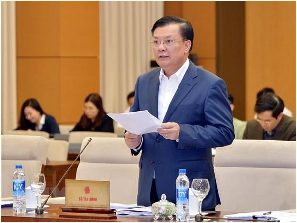 Bộ trưởng Bộ Tài chính Đinh Tiến Dũng trình bày Tờ trình. (Ảnh: Trọng Đức/TTXVN)