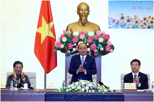 Thủ tướng Nguyễn Xuân Phúc và các đại biểu. (Ảnh: Thống Nhất/TTXVN)