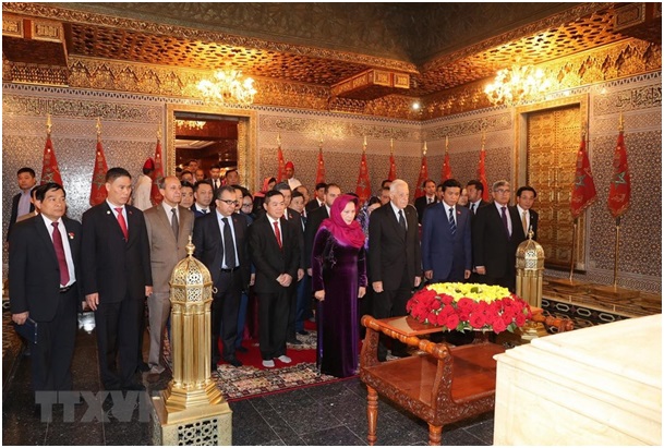 Sáng cùng ngày, tại Thủ đô Rabat, Chủ tịch Quốc hội Nguyễn Thị Kim Ngân và Đoàn đại biểu cấp cao Quốc hội Việt Nam đã đến đặt vòng hoa và vào Lăng viếng Vua Mohammed V./.