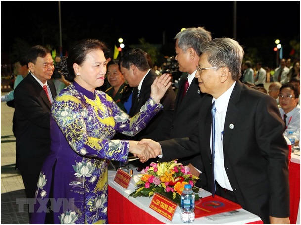 Chủ tịch Quốc hội Nguyễn Thị Kim Ngân và các đại biểu dự lễ. (Ảnh: Trọng Đức/TTXVN)