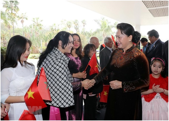 Đánh giá cao nỗ lực, đóng góp của cộng đồng, bà con đoàn kết, giúp đỡ nhau vượt khó khăn để ổn định cuộc sống, hòa nhập xã hội sở tại và có những đóng góp tích cực đối với đất nước, Chủ tịch Quốc hội cho rằng Đại sứ quán cần hướng dẫn các hội đoàn của người Việt hoạt động đúng mục đích và phù hợp với pháp luật nước sở tại, thực sự là hình ảnh, cầu nối quan trọng góp phần tăng cường và củng cố quan hệ hợp tác hữu nghị mọi mặt giữa hai nước.