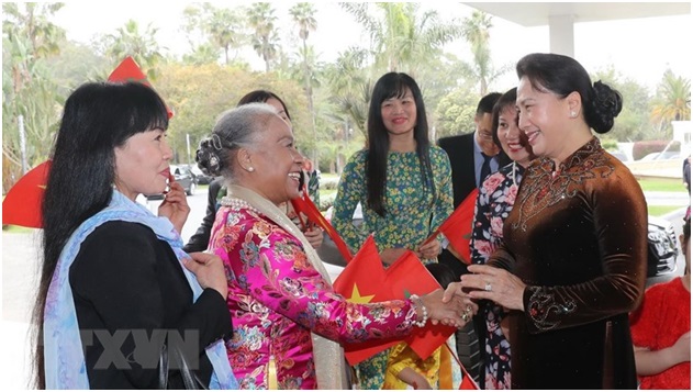 Ngay sau khi tới thủ đô Rabat của Vương quốc Maroc, chiều tối 27/3 theo giờ địa phương, Chủ tịch Quốc hội Nguyễn Thị Kim Ngân đã gặp gỡ cán bộ Đại sứ quán Việt Nam và đại diện cộng đồng người Việt Nam tại Vương quốc Maroc.