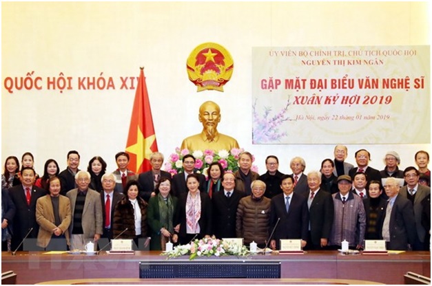 Sáng 22/1, tại Nhà Quốc hội, Chủ tịch Quốc hội Nguyễn Thị Kim Ngân đã gặp mặt các đại biểu văn nghệ sỹ nhân dịp đầu năm 2019 và chuẩn bị đón Xuân Kỷ Hợi.