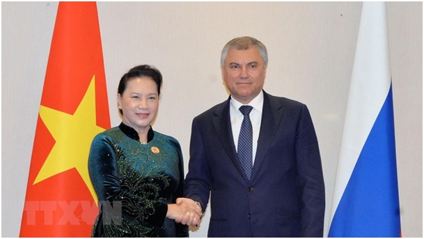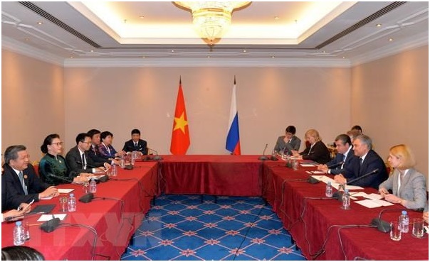 Chủ tịch Quốc hội Nguyễn Thị Kim Ngân và Chủ tịch Đuma Quốc gia Nga V.Volodin bày tỏ vui mừng gặp lại; cho rằng những cuộc gặp như thế này sẽ thúc đẩy mối quan hệ giữa hai quốc hội và hai nước. Hai nhà lãnh đạo cũng nhấn mạnh, mối quan hệ Việt Nam-Liên bang Nga, cũng như quốc hội hai nước đang phát triển năng động trên tất cả các lĩnh vực.