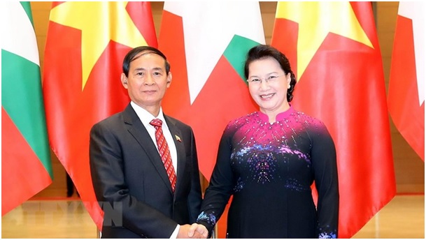 Nhấn mạnh mối quan hệ hữu nghị truyền thống và hợp tác giữa Myanmar và Việt Nam do Chủ tịch Hồ Chí Minh và Tướng Aung San đặt nền móng, được các thế hệ lãnh đạo và nhân dân hai nước các thế hệ sau tiếp tục dày công vun đắp, Tổng thống cho biết với sự hỗ trợ giúp đỡ của các đối tác phát triển và những người bạn như Việt Nam đã góp phần giúp Myanmar phát triển đất nước.