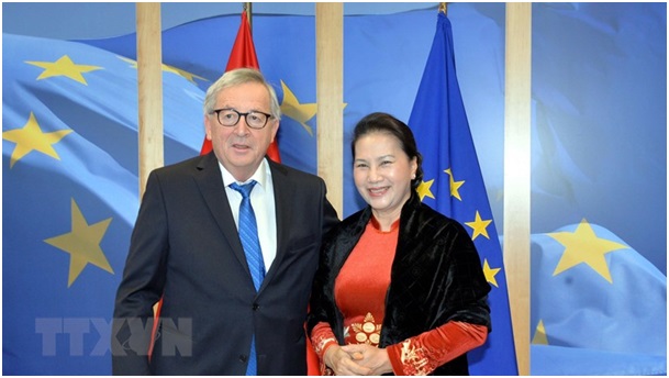 Chủ tịch Quốc hội Nguyễn Thị Kim Ngân cảm ơn Chủ tịch EC Jean-Claude Juncker vì những tình cảm tốt đẹp dành cho nhân dân Việt Nam.