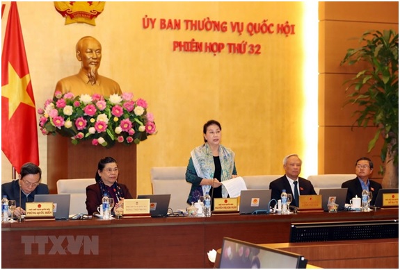 Chủ tịch Quốc hội Nguyễn Thị Kim Ngân chủ trì và phát biểu khai mạc Phiên họp thứ 32 của Ủy ban Thường vụ Quốc hội khóa XIV. (Ảnh: Trọng Đức/TTXVN)