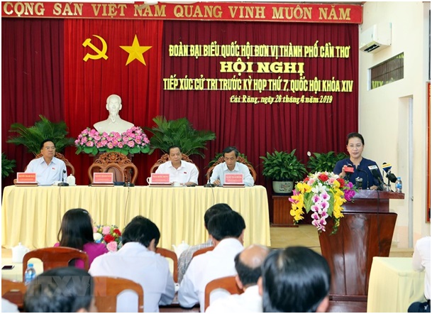 Tiếp tục chuyến công tác tiếp xúc cử tri trước Kỳ họp thứ 7, Quốc hội khóa XIV, ngày 26/4, Chủ tịch Quốc hội Nguyễn Thị Kim Ngân đã tiếp xúc với cử tri, nhân dân xã Nhơn Nghĩa, huyện Phong Điền và quận Cái Răng, thành phố Cần Thơ.