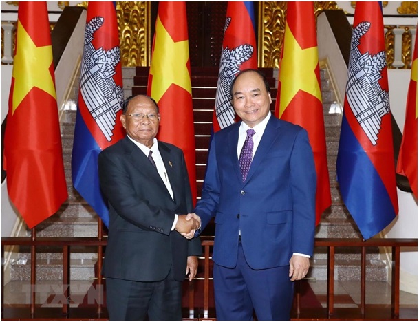 Cảm ơn những lời nói tốt đẹp của Chủ tịch Quốc hội Heng Samrin về quan hệ hai nước, Thủ tướng Nguyễn Xuân Phúc nêu rõ Việt Nam luôn coi trọng, ưu tiên phát triển quan hệ hợp tác và hữu nghị toàn diện với Campucha; ủng hộ Campuchia trong công cuộc phát triển đất nước.