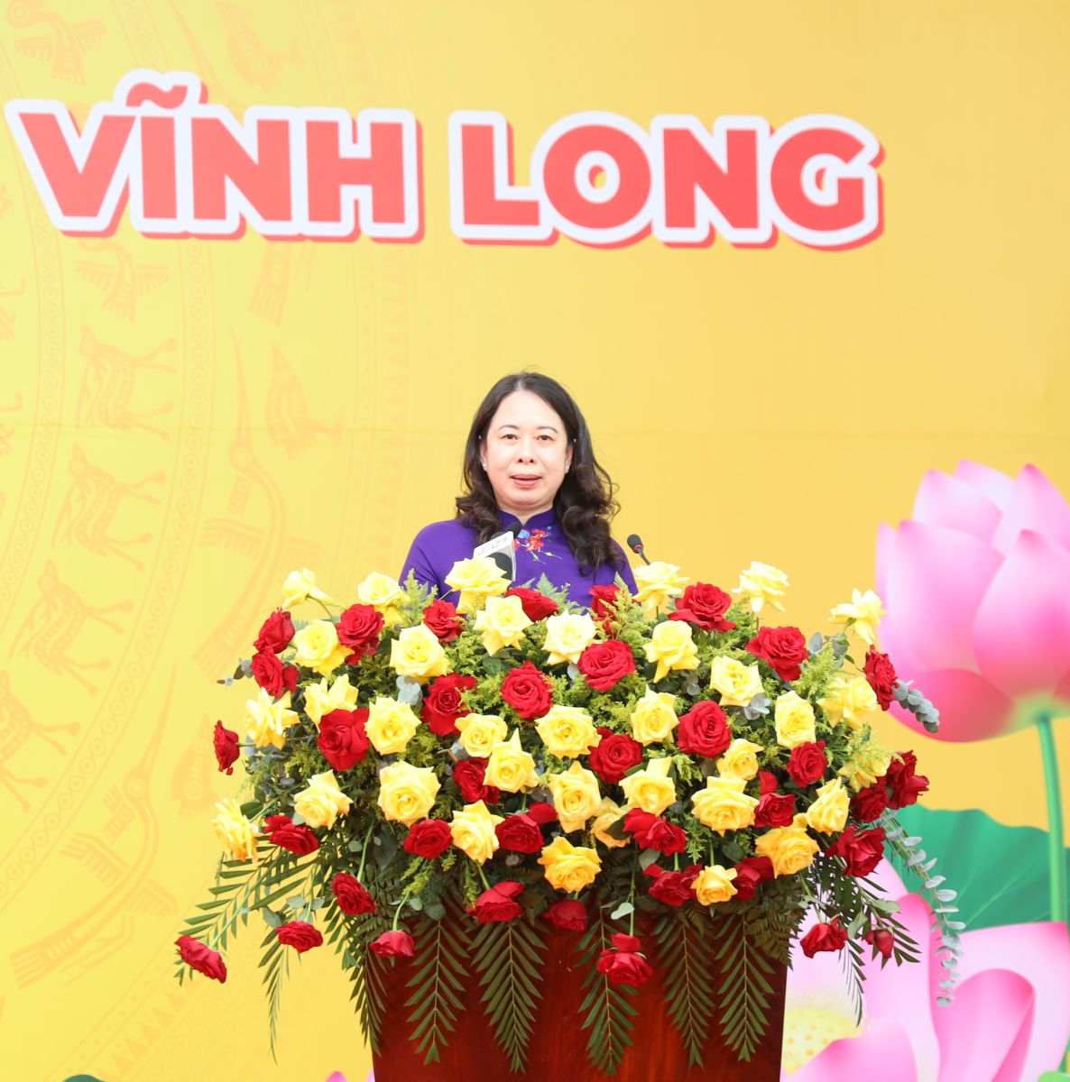 Phó Chủ tịch nước Võ Thị Ánh Xuân đề nghị Vĩnh Long tập trung tháo gỡ các điểm nghẽn về thể chế, hạ tầng, đầu tư công, cải cách hành chính, chuyển đổi số, chất lượng nguồn nhân lực và môi trường đầu tư kinh doanh; ưu tiên nguồn lực cho các dự án trọng điểm, chương trình trực tiếp nâng cao đời sống nhân dân, đặc biệt ở vùng đồng bào dân tộc. Tỉnh phát huy vai trò chủ thể của nhân dân, đổi mới công tác dân vận, góp phần xây dựng chính quyền địa phương hoạt động thông suốt, hiệu quả, phục vụ tốt hơn cho nhân dân và doanh nghiệp.