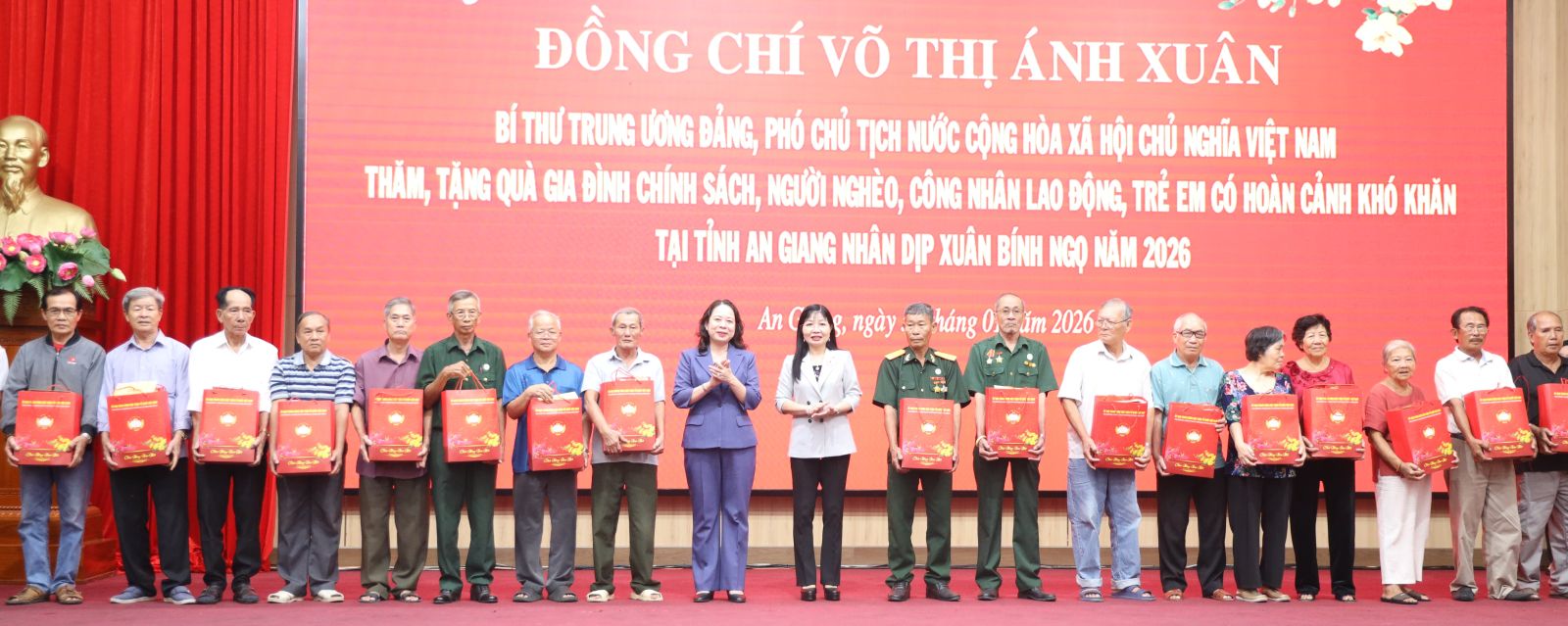 Nhân chuyến thăm và chúc Tết tại An Giang, Bí thư Trung ương Đảng, Phó Chủ tịch nước Võ Thị Ánh Xuân và Đoàn công tác đã thành kính dâng hương tại Đền tưởng niệm Anh hùng Liệt sĩ và người có công tại phường Rạch Giá; dâng hương, dâng hoa tại Khu lưu niệm Chủ tịch Tôn Đức Thắng ở xã Mỹ Hòa Hưng; trao quà Tết tặng cán bộ, nhân viên Ban Quản lý Khu lưu niệm Chủ tịch Tôn Đức Thắng; tặng 50 phần quà Tết cho các hộ nghèo, hộ khó khăn trên địa bàn xã Mỹ Hòa Hưng, chúc bà con nhân dân đón Tết Nguyên đán Bính Ngọ 2026 an vui, hạnh phúc.