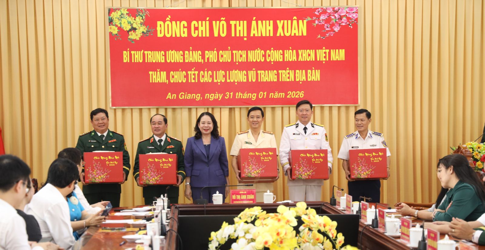 Phó Chủ tịch nước Võ Thị Ánh Xuân khẳng định, trong kỷ nguyên vươn mình của dân tộc, sự đoàn kết của Đảng bộ, chính quyền và các lực lượng vũ trang trên địa bàn tỉnh sẽ là nhân tố quyết định để bảo vệ vững chắc vùng đất Tây Nam của Tổ quốc, góp phần xây dựng một Việt Nam phồn vinh, hạnh phúc. Đồng thời, gửi lời chúc sức khỏe, hạnh phúc và thắng lợi đến toàn thể cán bộ, chiến sĩ và nhân dân tỉnh An Giang nhân dịp Xuân Bính Ngọ 2026, kỳ vọng vào một năm mới với những bứt phá mạnh mẽ hơn nữa trên mọi mặt trận.