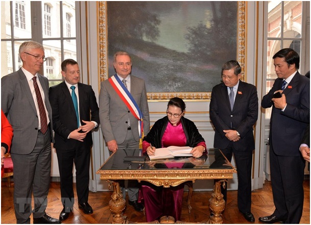 Thông báo với Thị trưởng Jean-Luc Moudenc về mục đích chuyến thăm chính thức Pháp của Đoàn đại biểu cấp cao Quốc hội Việt Nam, Chủ tịch Quốc hội Nguyễn Thị Kim Ngân nêu rõ, hai nước đã thiết lập quan hệ Đối tác chiến lược từ năm 2013 và vừa kỷ niệm 45 năm thiết lập quan hệ ngoại giao năm trong năm 2018.