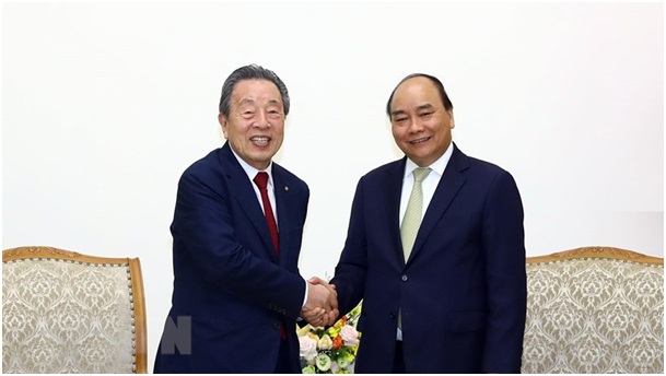 Thủ tướng Nguyễn Xuân Phúc tiếp ông Han Chang-woo, Chủ tịch Tập đoàn Maruhan (Nhật Bản). (Ảnh: Thống Nhất/TTXVN)