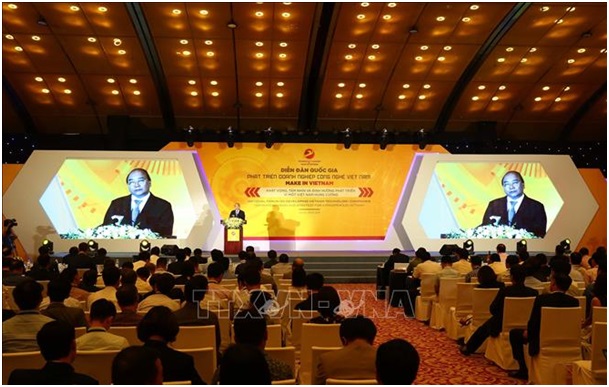 Sáng 9/5, Thủ tướng Chính phủ Nguyễn Xuân Phúc đã tham dự và phát biểu chỉ đạo tại Diễn đàn quốc gia phát triển doanh nghiệp công nghệ lần đầu tiên tổ chức tại Việt Nam với chủ đề “Khát vọng, tầm nhìn và định hướng phát triển vì một Việt Nam hùng cường” với khẩu hiệu hành động “Make in Vietnam”.