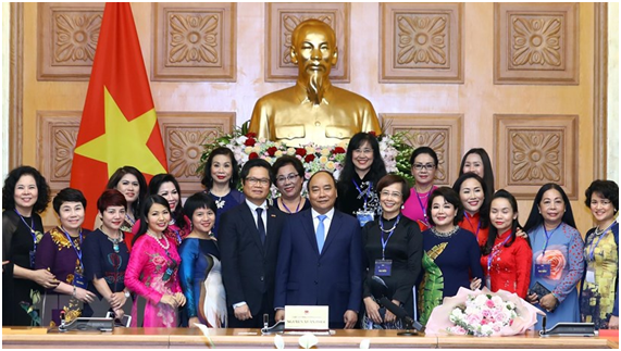 Thủ tướng chia sẻ, trong chuyến thăm Nhật Bản vừa qua, Thủ tướng Nhật Bản Shinzo Abe có nói rằng sẽ đến, học tập kinh nghiệm của Việt Nam trong vấn đề bình đẳng giới. “Chúng ta có khát vọng phát triển mạnh mẽ, để thu nhập của người dân cao hơn, đời sống vật chất, tinh thần của người dân tốt hơn, môi trường kinh doanh được cải thiện hơn,” Thủ tướng mong muốn các nữ doanh nhân tiếp tục vươn lên, đóng góp vào sự phát triển của đất nước, để Việt Nam trở thành công xưởng của thế giới về các sản phẩm có chất lượng, sức cạnh tranh ngày càng cao.