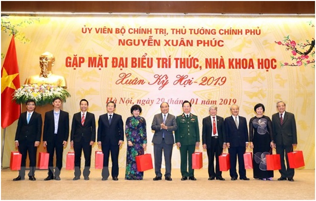 Sáng 29/1, Thủ tướng Nguyễn Xuân Phúc gặp mặt, chúc Tết 300 đại biểu trí thức, nhà khoa học, đại diện cho các trí thức, nhà khoa học cả nước. Cùng dự có Phó Thủ tướng Vũ Đức Đam, lãnh đạo một số bộ, ngành và địa phương, Liên hiệp Các hội khoa học kỹ thuật Việt Nam, Viện Hàn lâm Khoa học công nghệ Việt Nam, Viện Hàn lâm Khoa học và Xã hội Việt Nam.