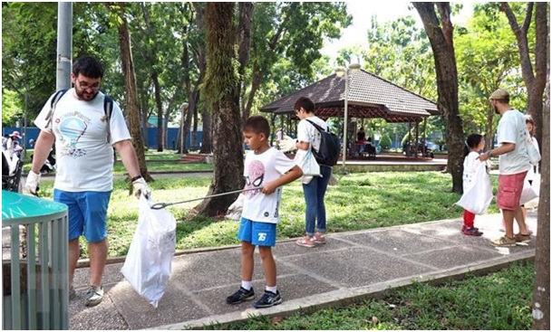 Bạn bè quốc tế chung tay với người dân Việt Nam trong chiến dịch Ngày làm sạch rác thải nhựa 2019 tại Thành phố Hồ Chí Minh. (Ảnh: Xuân Khu/TTXVN)