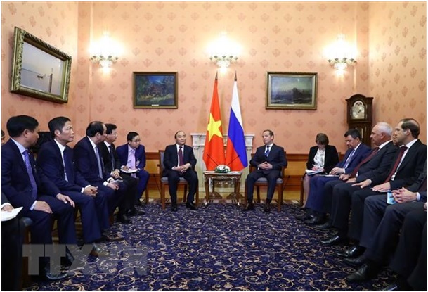 Thủ tướng Nga Dmitry A. Medvedev chào mừng và đánh giá cao chuyến thăm chính thức Liên bang Nga lần này của Thủ tướng Chính phủ Nguyễn Xuân Phúc, khẳng định Nga luôn mong muốn tăng cường quan hệ Đối tác chiến lược toàn diện giữa hai nước.