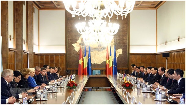 Nhận lời mời của Thủ tướng Romania Viorica Dancila, Thủ tướng Chính phủ Nguyễn Xuân Phúc cùng đoàn đại biểu cấp cao Chính phủ Việt Nam thăm chính thức Romania từ ngày 14-16/4. Sáng 15/4, sau lễ đón trọng thể, Thủ tướng Chính phủ Nguyễn Xuân Phúc đã hội đàm với Thủ tướng Romania Viorica Dancila.