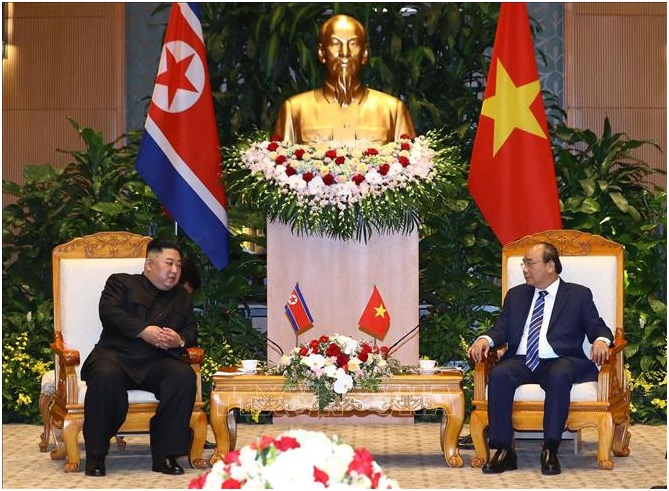 Thủ tướng Nguyễn Xuân Phúc hội kiến Chủ tịch Triều Tiên Kim Jong-un. Ảnh: Thống Nhất/TTXVN