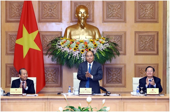 Thủ tướng Nguyễn Xuân Phúc chủ trì cuộc họp. (Ảnh: Thống Nhất/TTXVN)