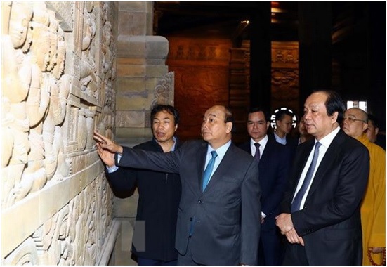 Thủ tướng Nguyễn Xuân Phúc đến kiểm tra công tác chuẩn bị cho Đại Lễ Phật đản Liên hợp quốc (Vesak) 2019. (Ảnh: Thống Nhất/TTXVN)