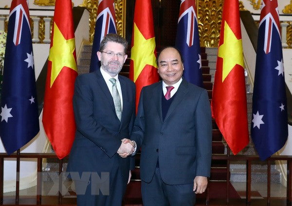 Chiều 21/1, tại Trụ sở Chính phủ, Thủ tướng Nguyễn Xuân Phúc tiếp Chủ tịch Thượng viện Australia Scott Ryan đang thăm chính thức Việt Nam. Phát biểu ý kiến tại buổi tiếp, Thủ tướng Nguyễn Xuân Phúc bày tỏ tin tưởng chuyến thăm của Chủ tịch Thượng viện sẽ thành công tốt đẹp, mở ra chương mới, góp phần củng cố quan hệ Đối tác Chiến lược Việt Nam-Australia và quan hệ giữa Quốc hội hai nước.