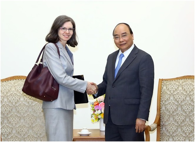 Thủ tướng Nguyễn Xuân Phúc tiếp Đại sứ Đặc mệnh toàn quyền Canada, bà Deborah Anne Paul. (Ảnh: Thống Nhất/TTXVN)